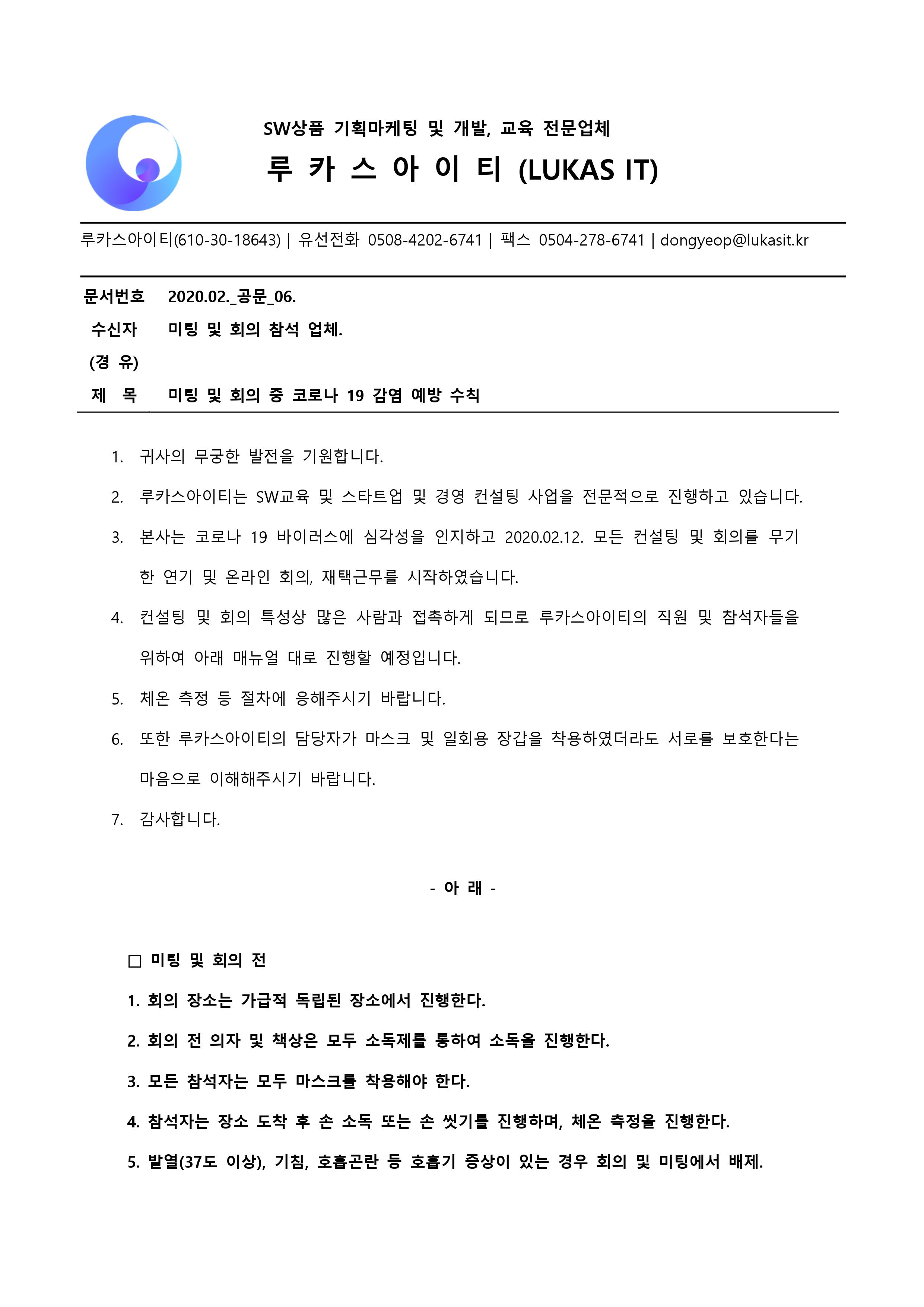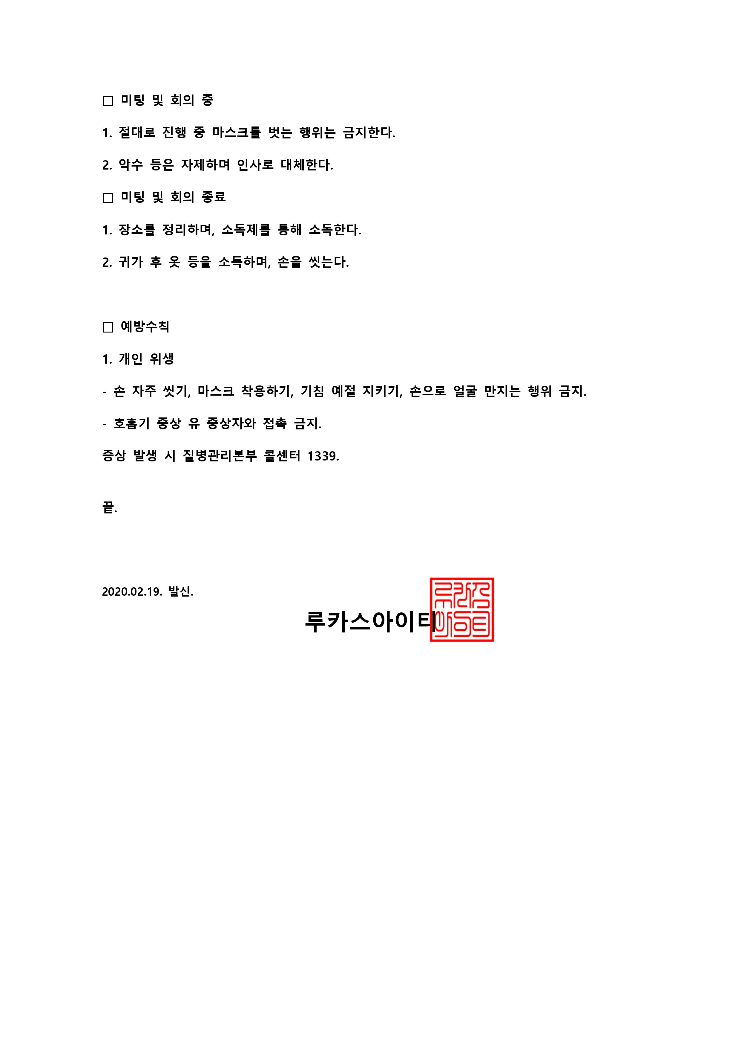 미팅 및 회의 중 코로나 19 감염 예방 수칙